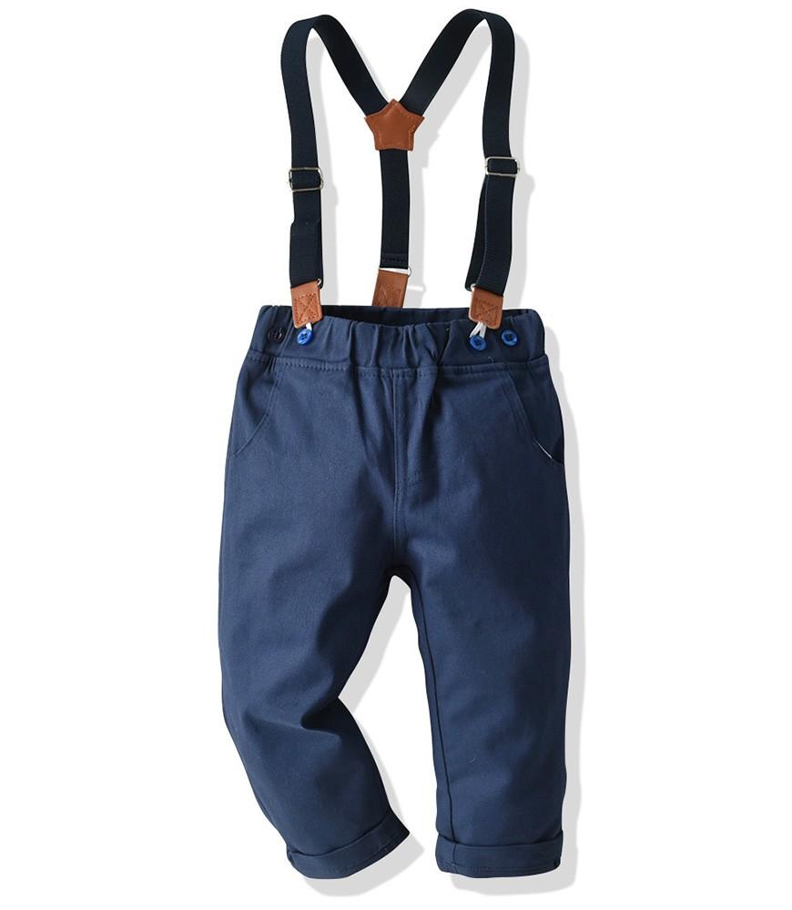 Boys Suit Blue Blazer White Shirt And Suspender Pants 3 Pieces Outfit