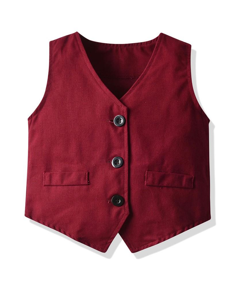 Boys Suit Outfit Set Bow-Tie Stripe Shirt Dark Red Waistcoat And Pants