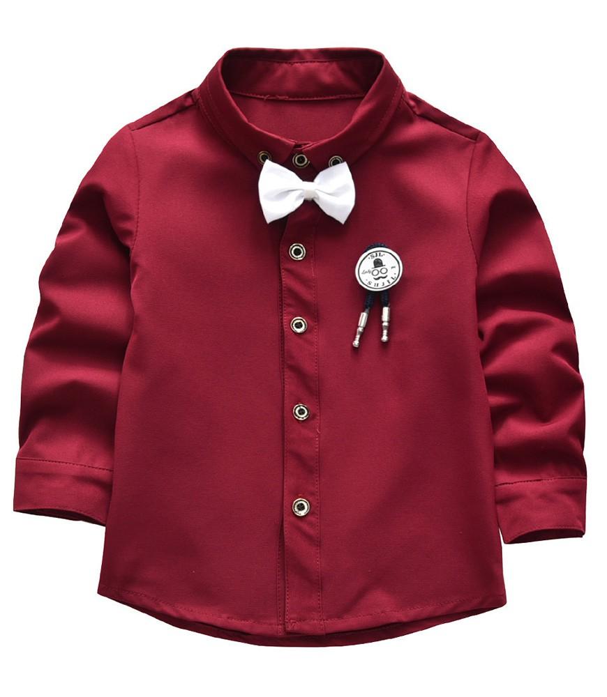 Dark Red Cotton Shirt With Bow Tie And Suspender Jeans Boys Outfit Set