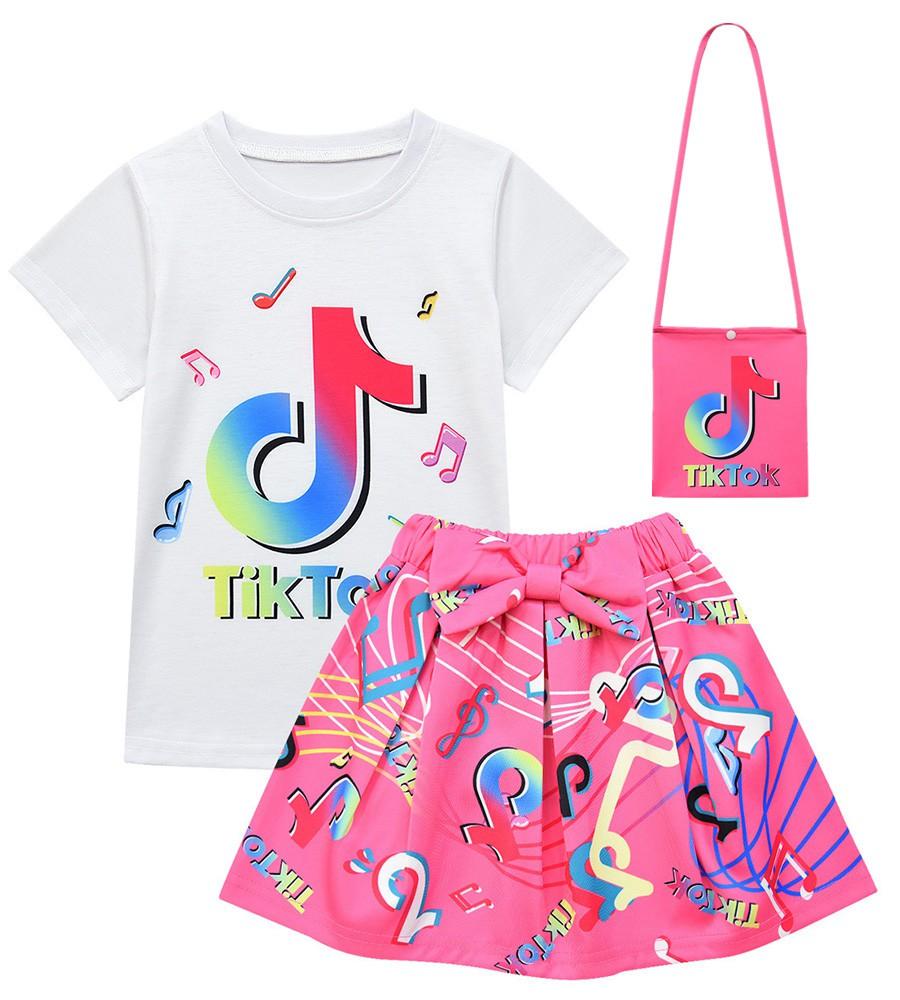 Girls Tik Tok Print T Shirt Skirt Suits Costume With Bag
